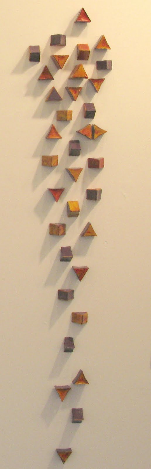“Off the Wall” is a series of cast encaustic sculptures that study the architecture of form. Casting encaustic (beeswax with pigment) in martini glasses, eggcups and muffin tins; Kim Bruce creates sculptures that explore the use of everyday objects as abstract architectural elements. Drawing on her architectural background, the former interior designer also investigates the use of geometric forms; constructing molds from mat board, clay and tin.
